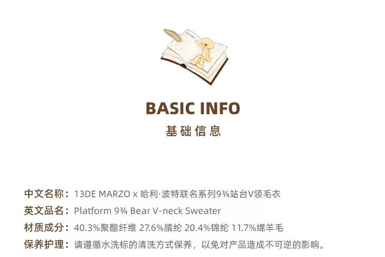 13DE MARZO x 哈利·波特联名 25FW 9¾站台V领毛衣